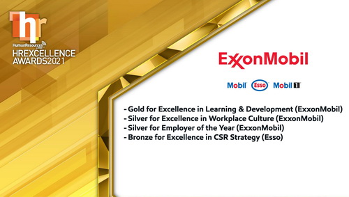 บริษัท เอ็กซอนโมบิล จำกัด และ บริษัท เอสโซ่ (ประเทศไทย) จำกัด (มหาชน) ซึ่งเป็นบริษัทในเครือเอ็กซอน โมบิลในประเทศไทย ได้รับรางวัล 2021 HR Excellence Awards จากบริษัทที่ปรึกษาด้านทรัพยากรบุคคลในเอเชีย Human Resources Online จากประสิทธิภาพในการปรับทิศทางตามลำดับความสำคัญทางธุรกิจด้วยกลยุทธการบริหารบุคคลสู่ความเป็นผู้นำในอุตสาหกรรม