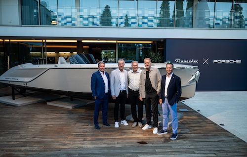 เหล่าสื่อต่างประเทศและผู้สนใจมีโอกาสได้ทดสอบ Frauscher x Porsche 850 Fantom Air ในอิตาลีเป็นครั้งแรก เรือสปอร์ตพลังงานไฟฟ้าลำนี้มาพร้อมกับเทคโนโลยีระบบส่งกำลังของปอร์เช่มาคันน์ซึ่งเป็นระบบไฟฟ้าล้วน มาพร้อมคุณลักษณะการควบคุมที่ยอดเยี่ยม