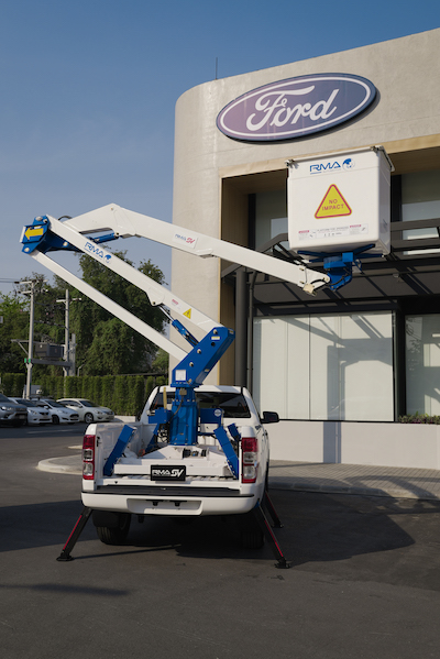 - รถกระเช้าไฟฟ้า ดัดแปลงโดยใช้รถกระบะฟอร์ด เรนเจอร์ รุ่นสแตนดาร์ดแค็บ 4×4 มีแขนเหล็กคุณภาพสูงสามารถยืดหดได้ มาพร้อมระบบควบคุมฉุกเฉินของฐานควบคุมและกระเช้าไฟฟ้า มีขาค้ำยันปรับระดับด้านหน้าและด้านหลัง สามารถปรับระดับตัวรถได้
