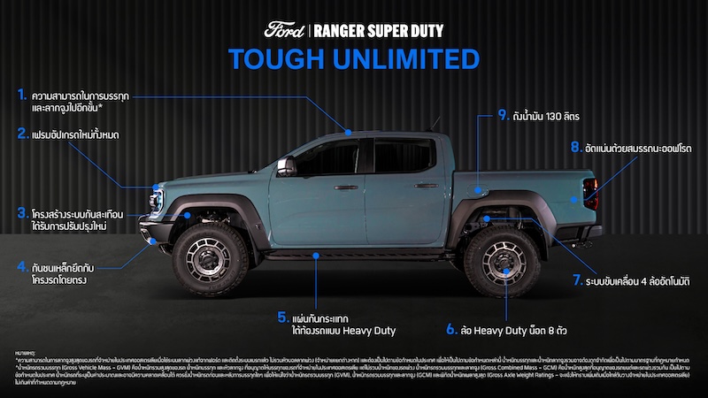 สำหรับรายละเอียดและข้อมูลจำเพาะสำหรับตลาดประเทศไทย จะมีการประกาศในช่วงใกล้การเปิดตัว ผู้ที่สนใจสามารถติดตามข้อมูลเพิ่มเติมได้ที่ Ford Ranger Super Duty หรือช่องทางโซเชียลมีเดียของฟอร์ด ประเทศไทย ทั้ง Facebook YouTube TikTok และ LINE @FordThailand