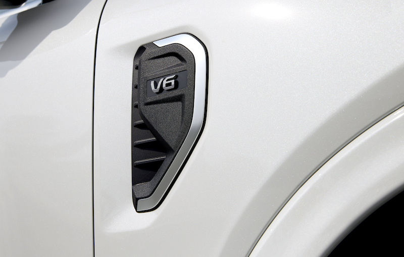 ทำงานร่วมกับเกียร์อัตโนมัติ 10 สปีด แบบ E-Shifter มอบพละกำลังสูงสุด 250 แรงม้า ที่ 3,250 รอบต่อนาที แรงบิดสูงสุด 600 นิวตันเมตร มาพร้อมล้ออัลลอย 20 นิ้ว ดีไซน์ใหม่ และตราสัญลักษณ์ วี 6 โดดเด่นบนช่องระบายอากาศด้านข้างตัวถัง ระบบไฟส่องสว่างแบบแบ่งโซน (Zone Lighting) ควบคุมการเปิดไฟส่องสว่างภายนอกตัวรถเมื่อต้องการแสงสว่างในการทำกิจกรรมต่างๆ ในตอนกลางคืน