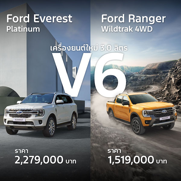 ฟอร์ด ประเทศไทย สร้างปรากฏการณ์ใหม่ให้กับตลาดรถยนต์ไทยอีกครั้ง ประกาศทำตลาดรถสองรุ่นใหม่ ฟอร์ด เรนเจอร์ ไวลด์แทรค และฟอร์ด เอเวอเรสต์ แพลทินัม พร้อมขุมพลังเครื่องยนต์ดีเซล 3.0 ลิตร วี 6 ที่พัฒนาขึ้นเพื่อให้ลูกค้ามีทางเลือกในการใช้รถที่มีสมรรถนะการขับขี่ขั้นสูง ตอบโจทย์การใช้งานและไลฟ์สไตล์ได้หลากหลายรูปแบบยิ่งขึ้น