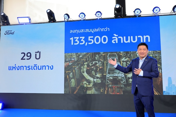 “ตลอด 29 ปีที่ผ่านมา ฟอร์ดยึดมั่นในพันธกิจการส่งมอบรถยนต์คุณภาพสูง เปี่ยมด้วยสมรรถนะที่ดีเยี่ยม และประสบการณ์การเป็นเจ้าของรถฟอร์ดที่ดีที่สุดให้กับลูกค้าชาวไทย ด้วยเม็ดเงินลงทุนสะสมกว่า 133,500 ล้านบาท ฟอร์ดนับเป็นหนึ่งในผู้ลงทุนรายใหญ่ที่สุดในอุตสาหกรรมยานยนต์ไทย
