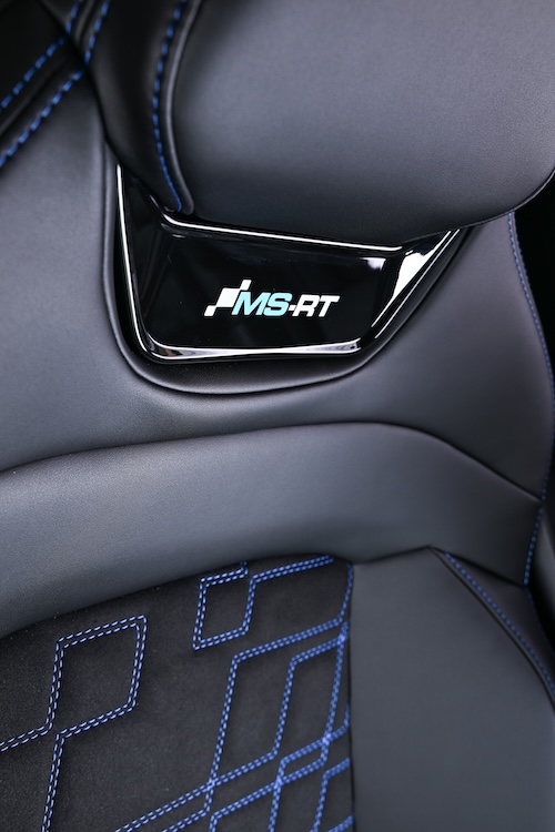 ภายในห้องโดยสารโดดเด่นด้วยการออกแบบที่ให้ความรู้สึกหรูหราและความสะดวกสบายสไตล์สปอร์ต ด้วยเบาะนั่งคู่หน้าที่ออกแบบเฉพาะให้รองรับสรีระของผู้ขับขี่อย่างลงตัว ด้านข้างเบาะโอบกระชับ เบาะหุ้มด้วยวัสดุหนังสังเคราะห์และหนังกลับ ตกแต่งด้วยโลโก้ MS-RT และเดินด้ายสีน้ำเงินทั้งบนเบาะและรอบห้องโดยสาร เพิ่มความพิเศษด้วยพวงมาลัยสปอร์ตดีไซน์ใหม่ ตกแต่งด้วยแถบสีน้ำเงินที่ตำแหน่ง 12 นาฬิกา และเดินด้ายสีน้ำเงินที่เข้ากันเป็นอย่างดี