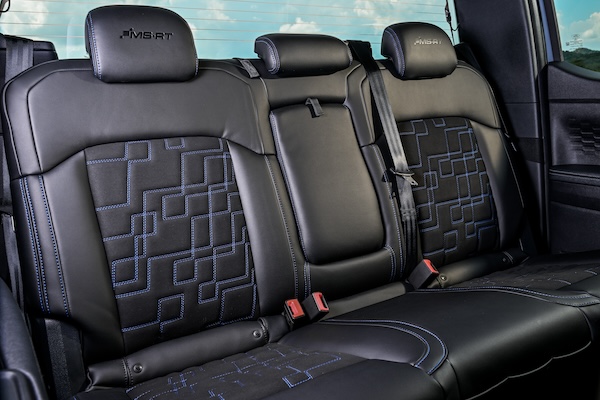 ฝาท้ายกระบะติดตั้งสัญลักษณ์ MS-RT และสปอยเลอร์หลังแบบดักเทล พร้อมด้วยสปอยเลอร์หลังคา ที่ได้รับการปรับแต่งด้วยการจำลองทางคอมพิวเตอร์เพื่อสร้างสมดุลทางอากาศพลศาสตร์ และช่วยเพิ่มเสถียรภาพในการขับขี่ที่ความเร็วสูง