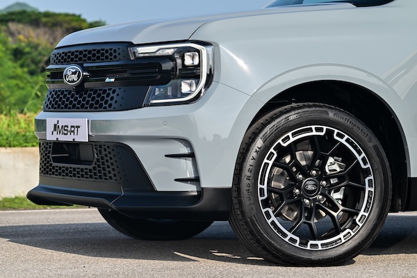 ล้ออัลลอยดีไซน์พิเศษลายไดมอนด์ คัท ขนาด 21 นิ้ว ประกอบกับยางแก้มเตี้ยขนาด 275/45 R21 ซึ่งถือเป็นล้อที่ใหญ่ที่สุดที่เคยมีมาในฟอร์ด เรนเจอร์ ภายใต้ซุ้มล้อที่กว้างขึ้นทั้งหน้าและหลัง ทำให้ความกว้างโดยรวมของรถเพิ่มขึ้น 82 มม. เพิ่มความโดดเด่นบนท้องถนน