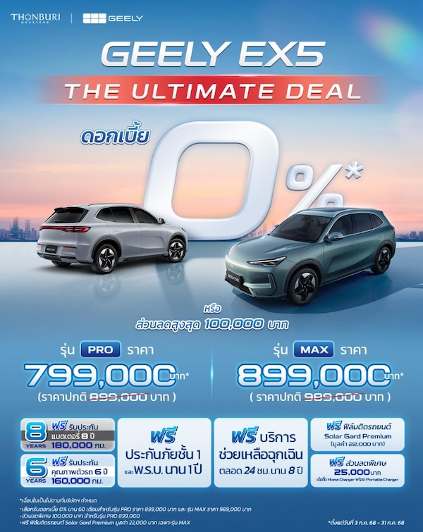 The Ultimate Deal GEELY เสิร์ฟความคุ้มแบบจัดเต็ม กับข้อเสนอพิเศษแห่งปี รับส่วนลดสูงสุด 100,000 บาท*
