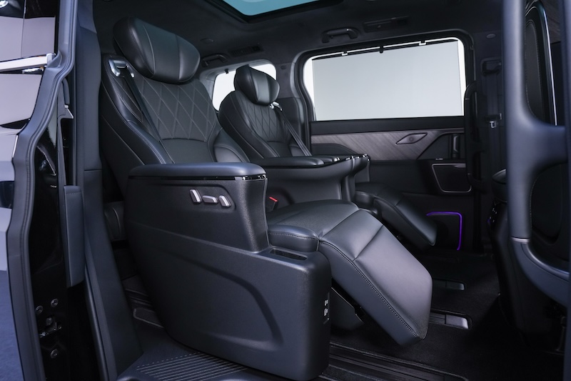 ภายในห้องโดยสารถูกออกแบบให้โปร่งโล่ง เดินผ่านสะดวกด้วยช่องกลางที่กว้างถึง 170 มิลลิเมตร นอกจากนี้ เบาะยังหุ้มด้วยหนัง Nappa คุณภาพสูงที่ให้สัมผัสนุ่ม หรูหรา ระบายอากาศได้ดี เบาะแถวสองแบบ Zero Gravity Seat