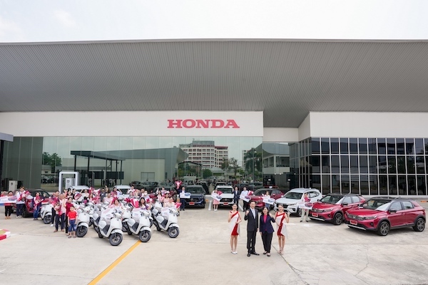 บริษัท ฮอนด้า ออโตโมบิล (ประเทศไทย) จำกัด นำโดย นายฮิเดโอะ คาวาซากะ ประธานกรรมการบริหารและซีอีโอ พร้อมด้วย คุณอารีย์ สุชนลิมะกุล ผู้จัดการทั่วไปส่วนการขายและส่วนบริการหลังการขาย ส่งมอบรางวัลใหญ่รถยนต์ฮอนด้าในไลน์อัปเอสยูวี 4 รุ่น รวมทั้งสิ้น 30 รางวัล รวมมูลค่ากว่า 13 ล้านบาท