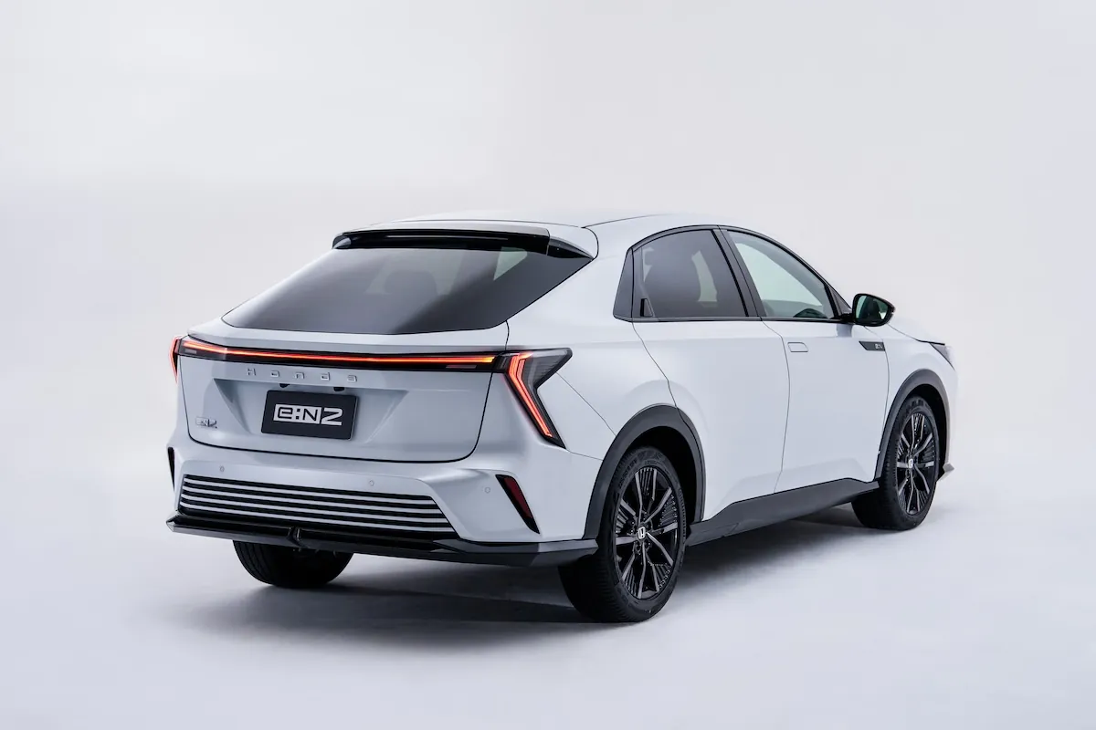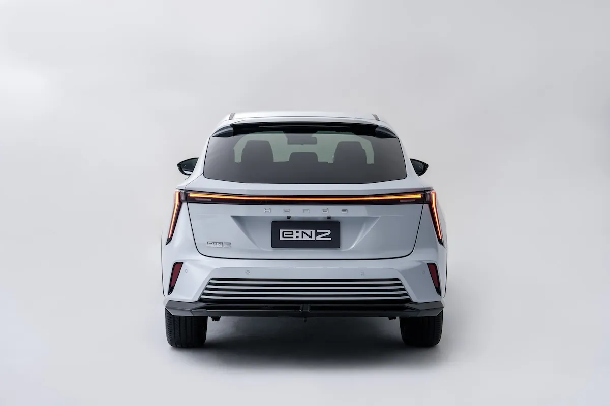 Honda e:N2 ถูกออกแบบเป็น SUV ท้ายลาดแบบ Fastback ภายใต้แนวคิด Knives Out เน้นเส้นสายคมชัด พร้อมองค์ประกอบที่เป็นเอกลักษณ์ของรถไฟฟ้า