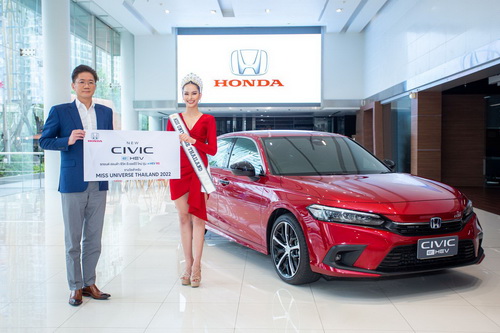 รถยนต์ ฮอนด้า ซีวิค อี:เอชอีวี ใหม่ รุ่น e:HEV RS สีแดงอิกไนต์ (เมทัลลิก) มูลค่า 1,259,000 บาท ให้แก่ “แอน-แอนนา เสืองามเอี่ยม” สาวงามผู้เดินตามความฝันด้วยความมุ่งมั่นจนสามารถคว้าตำแหน่งมิสยูนิเวิร์สไทยแลนด์ 2022 ไปครองได้สำเร็จ