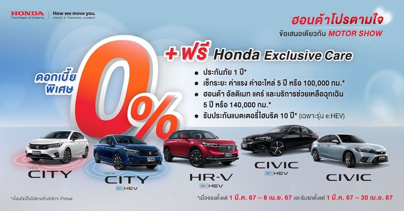 พร้อมพบกับข้อเสนอสุดพิเศษสำหรับภายในงานฯ และโชว์รูมฮอนด้าทั่วประเทศ โดยสามารถสอบถามข้อมูลเพิ่มเติมได้จากที่ปรึกษาการขายโชว์รูมฮอนด้าทั่วประเทศ หรือแชตกับที่ปรึกษาการขายทางออนไลน์ผ่านเว็บไซต์ www.honda.co.th หรือติดต่อศูนย์บริการข้อมูลฮอนด้า 24ชั่วโมง โทร 0 2341 7777
