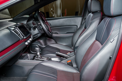 กันชนหน้า กันชนหลัง สเกิร์ตข้าง สปอยเลอร์หลัง และกระจังหน้าสไตล์สปอร์ตแบบ RS*ดีไซน์ภายในกว้างขวาง โปร่งโล่ง เสริมลุคสปอร์ตพรีเมียมใหม่กับเส้นสายสีแดงภายใน มาพร้อมระบบเครื่องเสียงหน้าจอสัมผัสขนาด 8 นิ้ว แบบ Advanced Touch รองรับการเชื่อมต่อ Apple CarPlay และ Android Auto แบบไร้สายที่เชื่อมต่อง่ายในไม่กี่ขั้นตอน