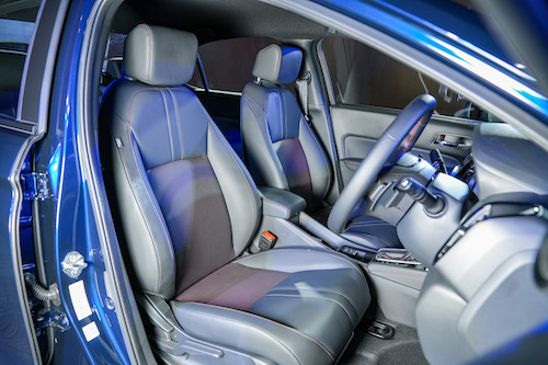 - วัสดุหุ้มเบาะผ้า (เฉพาะรุ่น V) และวัสดุหุ้มเบาะหนังแท้และหนังสังเคราะห์สีดำ (เฉพาะรุ่น SV และ e:HEV SV)