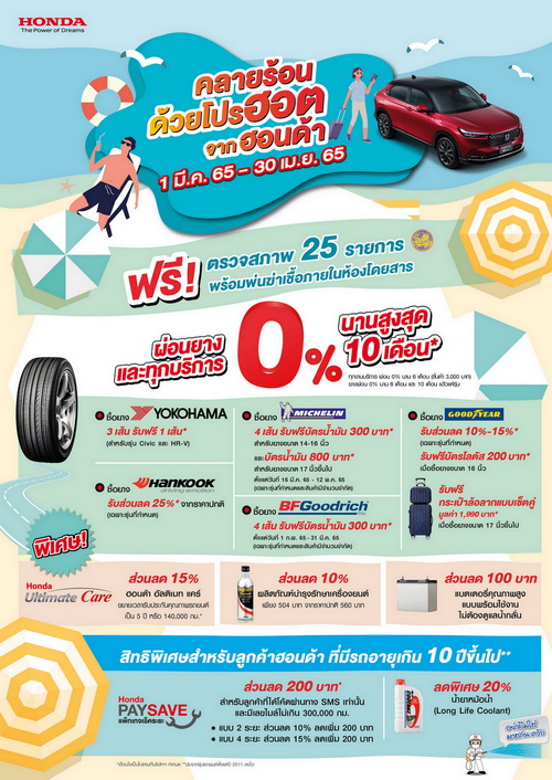 สิทธิประโยชน์สำหรับลูกค้าฮอนด้าในแคมเปญ “ซัมเมอร์นี้ คลายร้อน ด้วยโปรฮอตจากฮอนด้า”