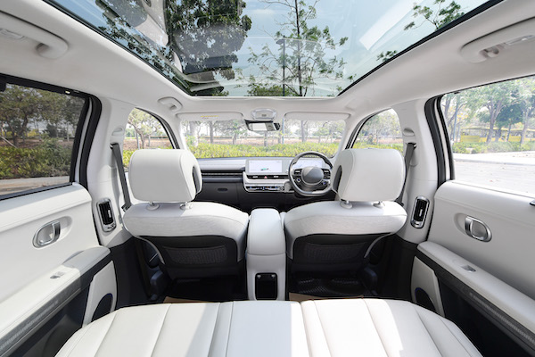 เพิ่มความโปร่งสบายด้วยแผงกระจกขนาดใหญ่แผ่นเดียวไม่มีสิ่งใดปิดกั้น และด้วยแนวคิดให้ความสบายสูงสุดเป็นที่ตั้ง IONIQ 5 จึงใช้เบาะนั่ง Zero Gravity Seat เพื่อมอบความผ่อนคลายระดับพรีเมียม โดยเบาะคู่หน้าสามารถปรับองศาได้อย่างเหมาะสม เพื่อมอบประสบการณ์ผ่อนคลายให้กับผู้โดยสาร พร้อมคงภาพลักษณ์ที่สวยงามหรูหราในทุกตารางนิ้ว