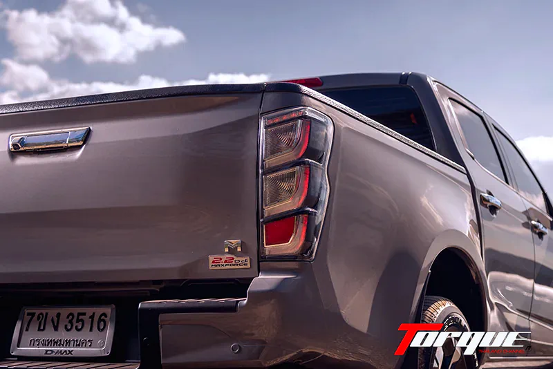 ด้านท้ายเสริมความสปอร์ตด้วย ไฟท้าย LED แบบ Clear Lens, กันชนท้ายทรงสปอร์ต และปิดท้ายด้วย ล้ออัลลอยขนาด 18 นิ้ว สีทูโทน ดีไซน์ Active Blade ซึ่งช่วยเติมภาพลักษณ์ความแข็งแกร่งในแบบกระบะยกสูงได้อย่างลงตัว