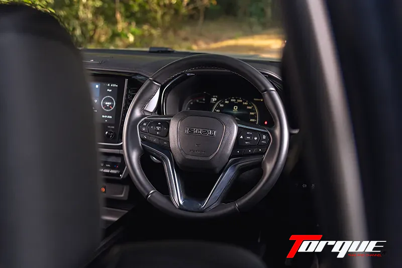 บุคลิกการขับขี่โดยรวมให้ความรู้สึกคุ้นเคยในแบบ ISUZU แต่จุดที่เปลี่ยนไปอย่างชัดเจนคือ พวงมาลัยไฟฟ้า EPS ซึ่งสามารถแปรผันน้ำหนักได้เหมาะสมในทุกช่วงความเร็ว ตั้งแต่ความเร็วต่ำที่เบาแรง คล่องตัว ไปจนถึงความเร็วเดินทางที่ให้ความมั่นใจ