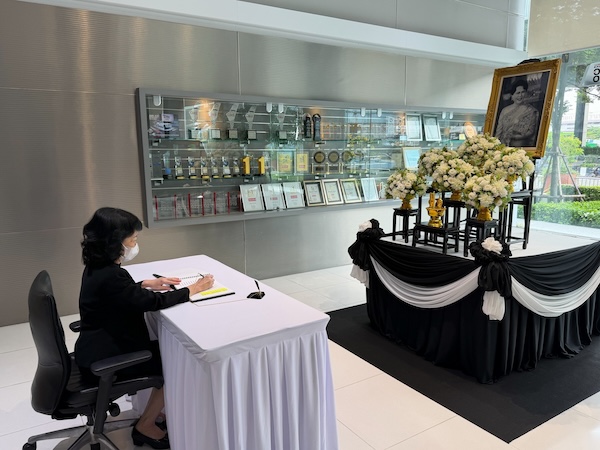 พร้อมจัดกิจกรรมเชิญชวนให้พนักงานทำริบบิ้นดำ และร่วมลงนามถวายอาลัยหน้าพระฉายาลักษณ์ และตกแต่งอาคารด้วยผ้าสีดำ-ขาว บริเวณด้านหน้าอาคารสำนักงานใหญ่ บริษัท ตรีเพชรอีซูซุเซลส์ จำกัด ศูนย์อะไหล่อีซูซุมีนบุรี และอื่น ๆ