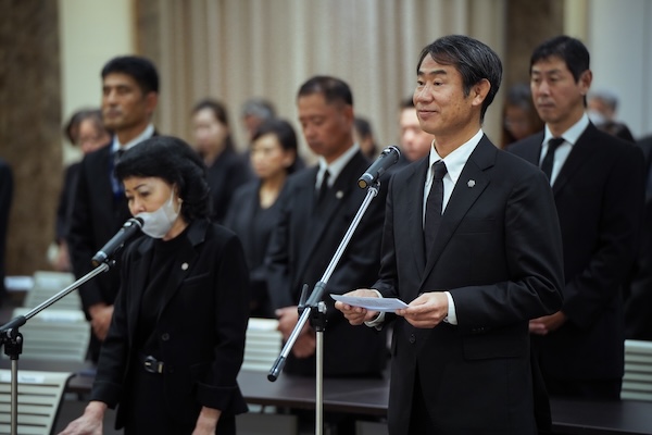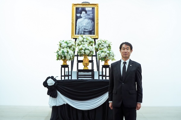 ในพิธีถวายอาลัยซึ่งจัดขึ้นที่ห้องประชุมชั้น 20 ของอาคารสำนักงานใหญ่นั้น มร. ทาคาชิ ฮาตะ กรรมการผู้จัดการ บริษัท ตรีเพชรอีซูซุเซลส์ จำกัด เป็นผู้กล่าวนำ