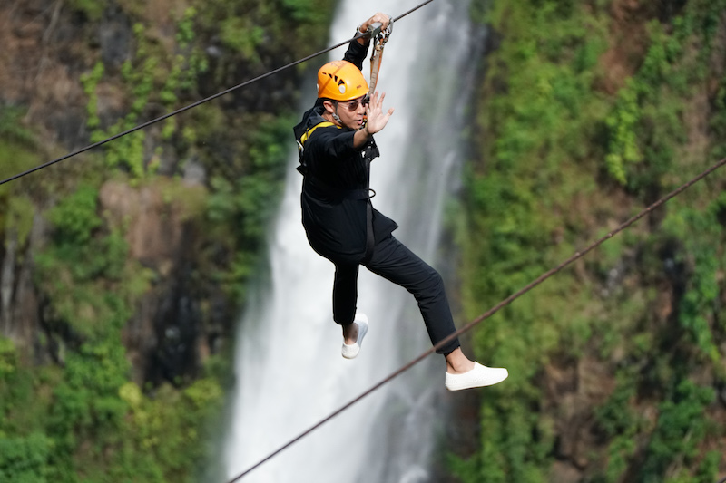 กิจกรรมไฮไลท์ที่พลาดไม่ได้ของที่นี่ก็คือ“ซิปไลน์” ที่สูงและหวาดเสียวที่สุดในลาว ด้วยความสูงกว่า 220 เมตร ด้วยการโหนซิปไลน์ท้าความกล้าร่วม 4 เส้น ชมวิวน้ำตก 2 สาย ที่ไหลลงมาจากหน้าผาสูงชันสู่กลางหุบเขาหลังจากนั้นกลับมาพักผ่อนและรับประทานอาหารเย็นที่ สะบายดี วัลเล่ย์ รีสอร์ท ท่ามกลางหุบเขา รายล้อมไปด้วยธรรมชาติและอากาศบริสุทธิ์ เงียบสงบเหมาะสำหรับช่วงเวลาพักผ่อน