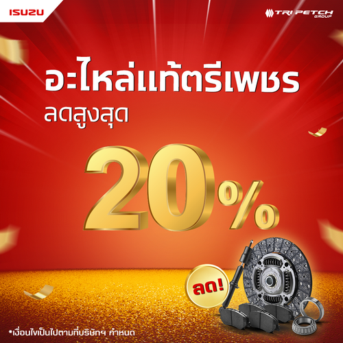 - ส่วนลดพิเศษอะไหล่บำรุงรักษาเชิงป้องกัน สำหรับอะไหล่แท้ตรีเพชร ลดสูงสุด 20% อะไหล่แท้อีซูซุ ลดสูงสุด 10%