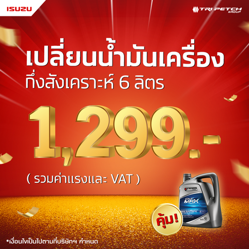 - ราคาพิเศษสำหรับการเปลี่ยนน้ำมันเครื่องตรีเพชร เกรดกึ่งสังเคราะห์ จำนวน 6 ลิตร ราคาเริ่มต้น 1,299 บาท รวมภาษีมูลค่าเพิ่ม จากปกติ 1,306 บาท