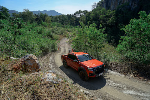 - 5 สถานีทดสอบสุดท้าทาย — เนินสลับพสุธาสั่นสะท้าน ไต่เนินชันสุดระทึก สถานีทดสอบ Rough Terrian ลุยโคลนดำดินดิ่งพิภพ และทางวิบากฝ่าท่อนซุง เพื่อทดสอบสมรรถนะของเครื่องยนต์ อีซูซุ 3.0 ดีดีไอ บลูเพาเวอร์ แรงจัดตั้งแต่รอบต่ำ ตอบสนองได้อย่างรวดเร็ว ทนทาน เสริมประสิทธิภาพการขับขี่ทั้ง 2 ล้อ และ 4 ล้อ ด้วยระบบ Rough Terrain Mode ควบคุมการกระจายกำลังทุกช่วงความเร็ว ระบบ Electric Diff-Lock ควบคุมการทำงานด้วยไฟฟ้า ช่วยล็อกเฟืองท้าย ให้เครื่องยนต์ส่งกำลังไปยังล้อหลังด้านซ้ายและขวาเท่ากัน เพื่อให้ผ่านอุปสรรคยาก ๆ ไปได้อย่างง่ายดาย พร้อมลุยได้อย่างมั่นใจด้วยระบบแสดงองศามุมปีนไต่และทิศทางการเลี้ยวผ่านหน้าจอ Integrated MID และ Infotainment Display ระบบความปลอดภัย ADAS ในการช่วยเหลือผู้ขับขี่ ด้วย 3D Imaging Stereo Camera ที่มีมุมมองกว้างและแม่นยำกว่าเดิม พร้อมเรดาร์ 2 จุด และเซ็นเซอร์ 8 จุดรอบคัน