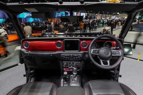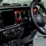 ตัดกันกับตะเข็บแดง พร้อมปักโลโก้ รูบิคอน บริเวณพนักพิง ส่วนเบาะหลังสามารถพับได้ 3 แบบ รองรับการใช้งานอย่างอเนกประสงค์ ขับกล่อมผู้โดยสารด้วยเสียงดนตรีไพเราะ ผ่านลำโพง Alpine 9 ตำแหน่ง พร้อมอุ่นใจในทุกการเดินทาง ด้วยระบบนำทาง Uconnect ผสานทัชสกรีน 8.4 นิ้ว ที่รองรับระบบปฏิบัติการ Android และ iOS