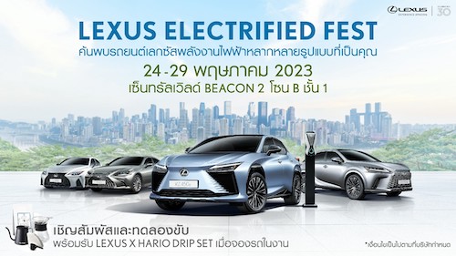 พร้อมรับข้อเสนอสุดพิเศษ และของสมมนาคุณ Lexus x Hario Drip Set (มีจำนวนจำกัด) เมื่อจองรถภายในงาน Lexus Electrified Fest ที่ Zone B ชั้น 1 Central World ตั้งแต่วันที่ 24-29 พฤษภาคม ศกนี้