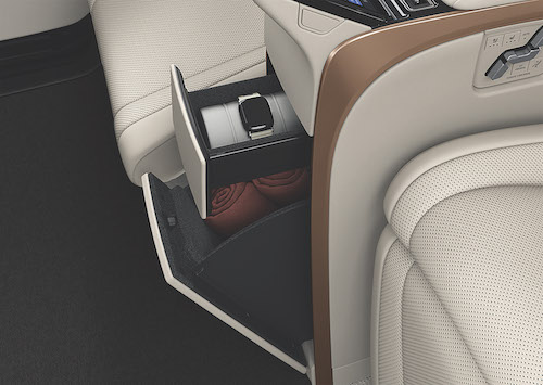ภายในห้องโดยสารตอนหลังออกแบบเพื่อมอบประสบการณ์การเดินทางสุดพิเศษ ด้วยแรงบันดาลใจจากที่นั่งเครื่องบินโดยสารชั้น First class พร้อมผนังกั้นเพื่อความเป็นส่วนตัว กระจกปรับความเข้มแสงอัจฉริยะ หน้าจอขนาดใหญ่ 48 นิ้ว ระบบเครื่องเสียงชั้นเลิศ “Mark Levinson Reference 3D Surround Sound System” ช่องเก็บของ ช่องแช่เครื่องดื่ม จุดชาร์จไฟ รองรับทุกความต้องการ