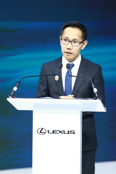 “ในวันนี้ ผมขอแนะนำรถยนต์ไฟฟ้ารุ่นใหม่ล่าสุด กับ The New All-Electric Lexus RZ (อาร์-ซี) ที่ได้รับการพัฒนาขึ้นเพื่อเป็นรถยนต์ไฟฟ้าอย่างแท้จริง แต่ยังคงความสุนทรีย์ ในแบบเฉพาะตัวของเลกซัสไว้อย่างครบถ้วน พิสูจน์ได้จากหนึ่งในคุณสมบัติพื้นฐานของรถยนต์เลกซัสทุกคัน นั่นคือ Lexus Driving Signature หรือประสบการณ์การขับขี่ อันเป็นเอกลักษณ์ของเลกซัส
