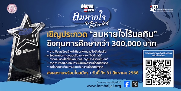 มูลนิธิลมหายใจไร้มลทิน โดยบริษัท สื่อสากล จำกัด ผู้จัดงาน “มหกรรมยานยนต์” ได้รับการสนับสนุนจาก กรมกิจการเด็กและเยาวชน กระทรวงการพัฒนาสังคมและความมั่นคงของมนุษย์ จัดโครงการลมหายใจไร้มลทิน ประจำปี 2568