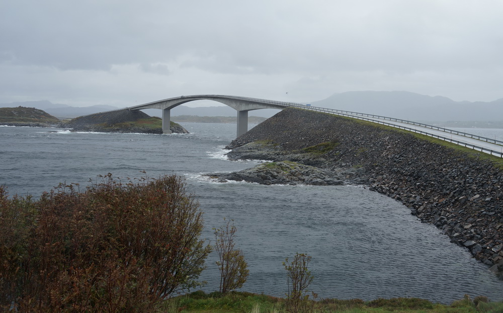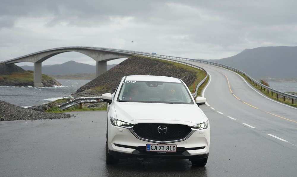 วันนี้เราได้นำขบวนมาสด้า cx-5 ขึ้นเรือเฟอร์รี่กันช่วยย่นระยะทางพอสมควร ซึ่งตัวเรือและระบบความปลอดภัยต้องยอมรับว่าดูมีมาตรฐานกว่าในบ้านเรามาก เราอยู่บนเรือประมาณ 20 นาที ก็ได้ยินเสียงเรียกขึ้นรถได้แล้วเตรียมออกเดินทางกันต่อเลย ลงเรือมาเรายังคงเจอกับถนนเล็ก ๆ ที่วิ่งลัดเลาะริมทะเลไปเรื่อย ๆ วันนี้ฝนตกไม่ขาดสายแถมยังมีลมพัดโหมแรง มาตามทางสักพักเราก็มาเห็นสะพานสวย ๆ ที่ออกแบบมีเอกลักษณ์ทำให้เรารู้ว่านี่คืออีกสถานที่ ที่ทุกคนรอคอยมันคือ Atlantic Road ถนนที่ถูกขนานนามว่าเป็นถนนสายที่สวยที่สุดในโลก ด้วยเส้นถนนที่เชื่อมเกาะเล็กเกาะน้อยเป็นเหมือนงูเลื้อย ซึ่งยากจะหาถนนเส้นใดเหมือน ซึ่งเรามีโอกาสได้เก็บภาพความประทับใจ แต่ฟ้าฝนก็ไม่ค่อยเป็นใจนัก ฝนเริ่มตกหนักมากแถมอากาศก็หนาวเย็น ทุกคนก็เลยต้องรีบทำเวลา จึงรีบขึ้นรถมุ่งไปทานข้าวเที่ยงที่ เมือง Molde ในนอร์เวย์