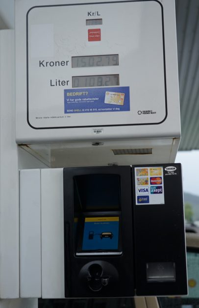 โดยวันต่อมาเราใช้สูตร 6 -7-8 เช่นเดิม คือตื่น 6 โมง อาบน้ำ ทานข้าวล้อหมุม 8 โมงนั้นเอง วันนี้สภาพพื้นถนนค่อนข้างเปียกแฉะจากพายุฝนเมื่อวาน อากาศยังคงอยู่เลข 2 ตัวต้น ๆ แม้ฝนจะหยุดตกไปแล้ว แต่ฟ้ายังขุ่นมัว โดยภารกิจแรกของเราวันนี้คือการเติมน้ำมัน ซึ่งบอกเลยว่าน้ำมันที่นี่แพงมากมาย เพราะอย่างดีเซลที่นี่ลิตรละเกือบ 50 บาทไทย โค้กกระป๋องละเกือบ 100 บาท ต้องบอกเลยว่าในกลุ่มประเทศสแกนดิเนเวีย นอร์เวย์ คือ ประเทศที่ค่าครองชีพสูงที่สุด โดยระบบการเติมน้ำมันที่นี่จะเป็นการเติมเองโดยใช้บัตรเครดิตรูดที่หน้าเครื่องเติมแล้วเราจึงค่อยไปเติมเอง ก็ได้ฟิลไปอีกแบบ หลังจากเติมพลังให้รถแล้ว เราเตรียมมุ่งต่อสู่เมือง Lulea โดยวันนี้เราจะขับยาว ๆ กว่า 660 กม.