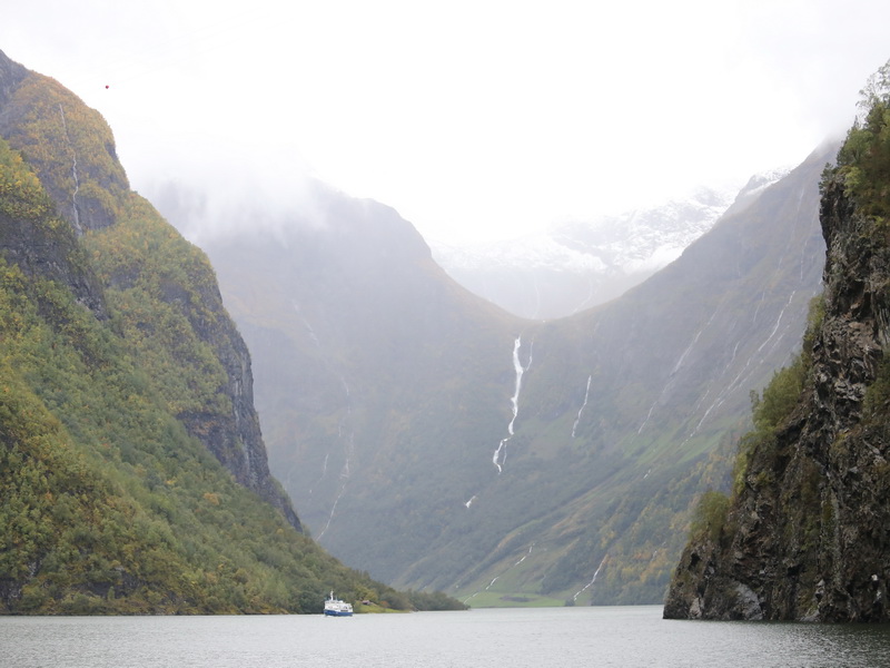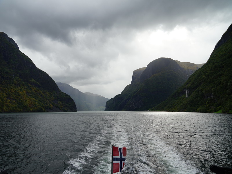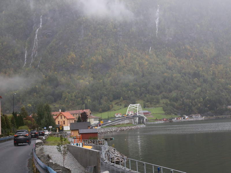 รุ่งเช้าในวันต่อมา วันนี้เราขับกันแบบสบาย ๆ เพียง 260 กม.เท่านั้น หลังจากควบระยะทางแบบ 600 กม. ทุกวันมาอย่างต่อเนื่อง โดยเราใช้เส้นทางสู่ชนบท ถนนเริ่มกลับมาเล็กเหมือนในวันแรก ๆ อีกครั้ง เพื่อมุ่งไปสู่เมือง Flam ในนอร์เวย์ ซึ่งที่นี่ตระการตาด้วยภูเขาสูงที่ล้อมรอบ ซึ่งในช่วงนี้ที่ฝนตกตลอดทำให้ตามกำแพงภูเขาที่ล้อมรอบนั้น มีสายน้ำตกเล็ก ๆ ให้เห็นเป็นหลายสิบสาย ซึ่งตรงจุดนี้เคยเป็นหนึ่งในธารน้ำแข็งขนาดใหญ่มาก ปัจจุบันละลายการเป็นเขตพื้นราบเป็นแอ่งกระทะ โดยที่นี่มีการล่องเรือเฟอรี่ไปตามเส้นทางธารน้ำแข่งเก่าที่ละลายเป็นทะเล ซึ่งวิวจะอลังการมากมาย หรือ จะนั่งรถไฟชมก็ได้ โดยเราจะเลือกที่จะล่องเรือชม โดยใช้เวลาเกือบสองชั่วโมง ก่อนถึงอีกฝั่ง แล้วค่อยนั่งรถบัสกลับมาที่จุดจอดรถในตอนแรก