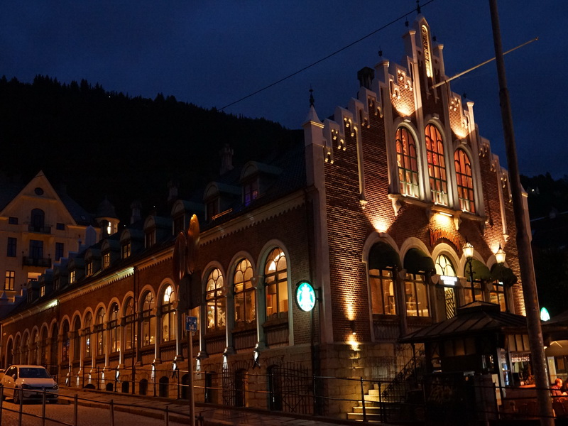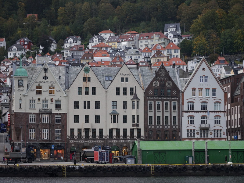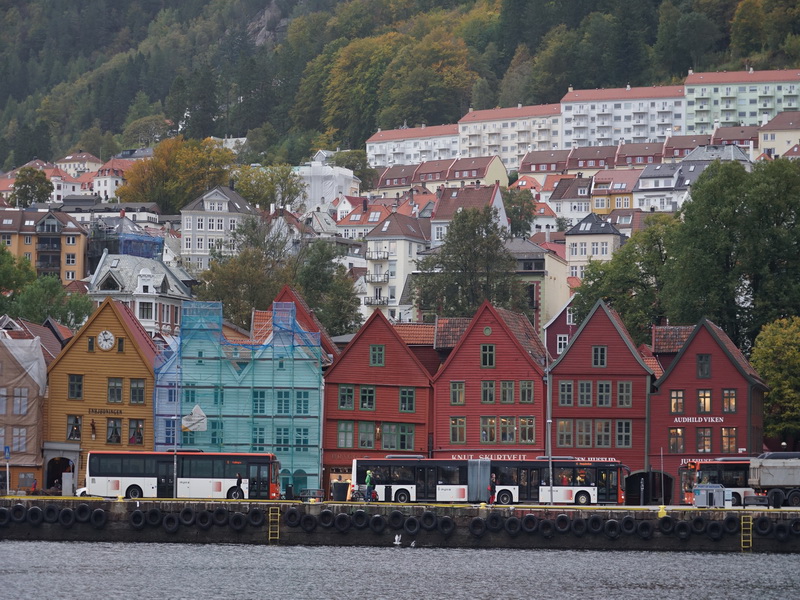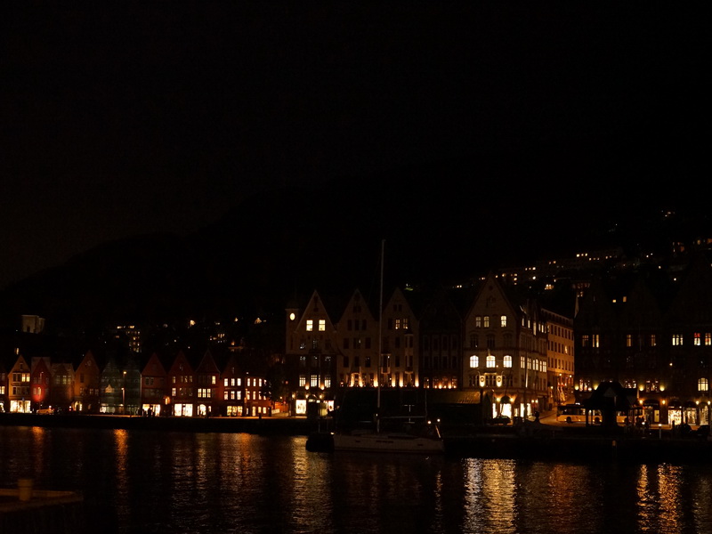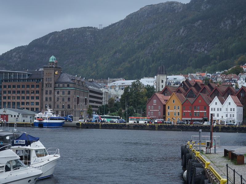 เราเดินทางต่อมาถึงเมือง Bergen อีกเมืองท่าอันดับต้น ๆ ของนอร์เวย์ ด้วยระยะทางที่ไม่มากในการขับขี่ในวันนี้ ทำให้มีเวลาเดินเล่นในเมืองนี้ ที่เมืองนี้ถือว่าเป็นแห่งท่องเที่ยวที่ขึ้นชื่อของนอร์เวย์ เพราะเป็นเมืองได้ได้รับการขึ้นเป็นมรดกโลกของยูเนสโก จากอาคารทรงเก่าแก่ทำด้วยไม้โบราณบริเวณท่าเรือ นอกจากนี้ของฝากที่ขึ้นชื่ออย่างพวกไข่ปลาคาเวียหลอด ด้วยความเป็นเมืองท่าทำให้มีของทะเลสด ๆ มากมาย ซึ่งอีกอย่างที่ดูน่าสนใจอย่างเนื้อปลาวาฬรมควันก็มีขาย ซึ่งเราก็ได้มีโอกาสชิมไปนิดหน่อยให้เป็นประสบการณ์ชีวิต เพราะไม่รู้ว่าจะได้มีโอกาสมาอีกเมื่อไหร่ มีโอกาสเลยขอลองดูสักที ซึ่งรถชาติก็ไม่แตกต่างจากทูน่ารมควันเค็ม ๆ เท่านั้นเอง กินทูน่าน่าจะดีกว่าเพราะยังไงก็เป็นอาหารมากกว่าปลาวาฬแน่นอน