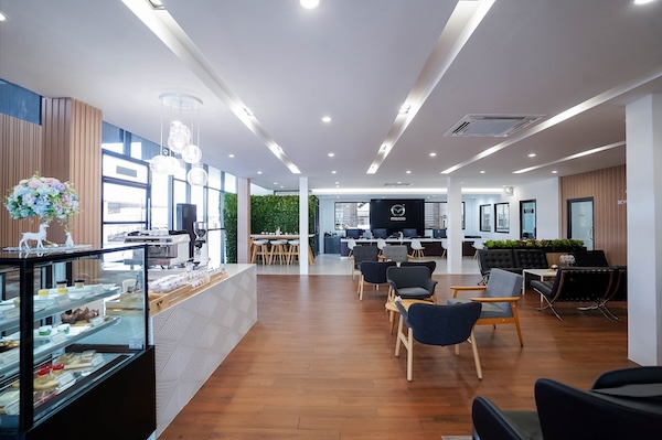 “บนเนื้อที่ครอบคลุม 12 ไร่ หรือ 19,200 ตารางเมตร แบ่งออกเป็นพื้นที่ส่วนโชว์รูมที่จัดแสดงรถยนต์มาสด้าได้ครบทุกรุ่น พร้อมด้วยห้องรับรองลูกค้าขนาดกว้างขวาง ที่ได้รับการตกแต่งอย่างทันสมัยและเป็นไปตามมาตรฐานมาสด้า