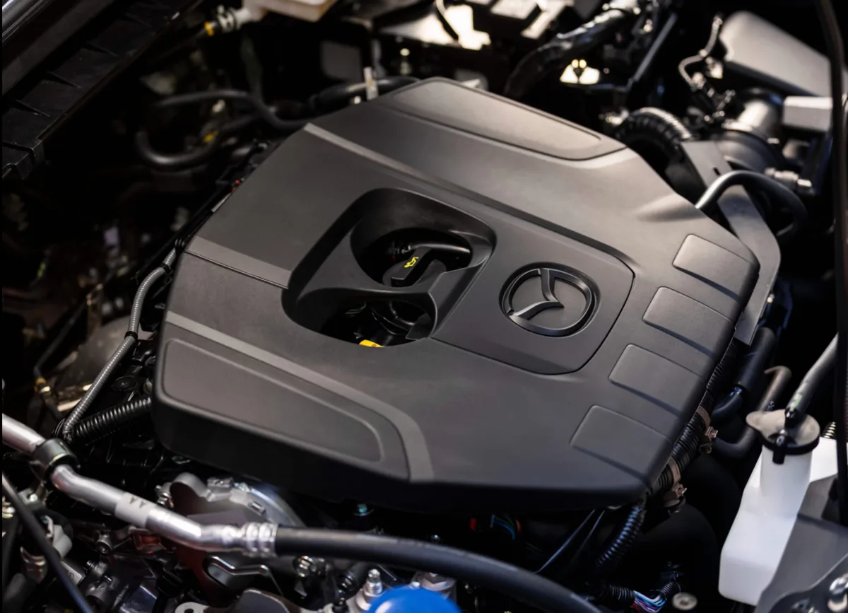 สำหรับขุมพลังของ CX-5 รุ่นสหราชอาณาจักร ใช้เครื่องยนต์เบนซิน 2.5 ลิตร e-Skyactiv G กำลัง 141 แรงม้า ทำงานร่วมกับระบบ 24V Mazda M Hybrid และระบบ brake-by-wire เข้ามาแทนเครื่องยนต์เบนซิน 2.0 ลิตรเดิม จุดที่บทความเน้นคือการตอบสนองของแรงบิดที่ดีขึ้น การเร่งแซงที่ต่อเนื่อง และความนุ่มนวลสบายในการขับใช้งานจริง โดยรุ่นขับเคลื่อนล้อหน้ามีแรงบิด 238 นิวตันเมตร และทำอัตราเร่ง 0-62 ไมล์/ชม. ใน 10.5 วินาที ขณะที่ตัวรถยังมีทั้งทางเลือก FWD และ AWD ตามแต่ตลาดและสเปกที่จัดจำหน่าย