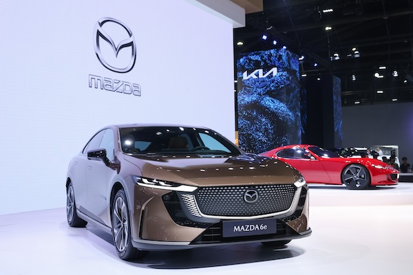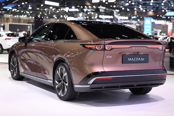 สำหรับรถยนต์รุ่นที่สองได้แก่ Mazda6e รถยนต์ไฟฟ้า 100% BEV รุ่นแรกที่มาสด้าพัฒนาขึ้นตามแนวทาง Multi-solution Technology สะท้อนเอกลักษณ์เฉพาะมาสด้าไว้อย่างชัดเจนในทุกองค์ประกอบ ทั้งดีไซน์ภายนอกที่สง่างามตามแนวคิด Kodo Design – Soul of Motion และเอกลักษณ์ของสมรรถนะการขับขี่ที่ทรงพลัง กระจายน้ำหนัก 50:50