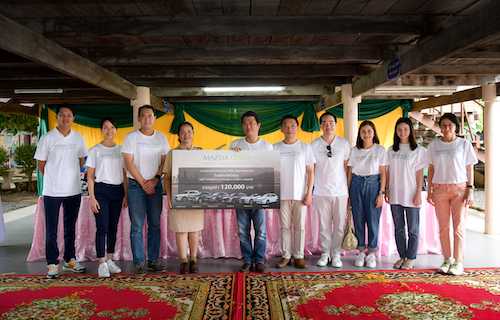 และ กลุ่มบริษัท แอลบา ทรอส ออโต้ พร้อมลูกค้าผู้ใช้รถยนต์มาสด้า รวมจำนวนกว่า 90 คน ออกเดินทางในรูปแบบคาราวานรถยนต์มาสด้าภายใต้เทคโนโลยีสกายแอคทีฟ กว่า 40 คัน มุ่งหน้าไปยังโรงเรียนวัดถั่วทอง จังหวัดปทุมธานี