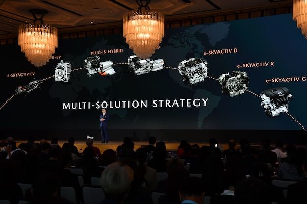 ซึ่งมาสด้ากำลังเดินหน้าตามแนวทาง Multi-Solution Strategy เพื่อเปลี่ยนผ่านไปสู่ยุคของรถยนต์พลังงานไฟฟ้า 100% ควบคู่กับการใช้แนวทาง Intentional Follower Approach โดยทำการศึกษาตลาดอย่างใกล้ชิดและรับฟังข้อคิดเห็นจากลูกค้า เพื่อให้สามารถพัฒนาผลิตภัณฑ์ยานยนต์พลังงานไฟฟ้าให้ดีที่สุด