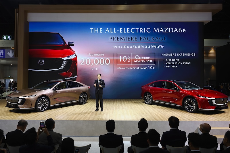 หลังจากเปิดตัวแนะนำรถยนต์ไฟฟ้ารุ่นแรกในประเทศไทย The All-Electric Mazda6e พร้อมเปิดให้ผู้ที่สนใจลงทะเบียนจองสิทธิ์ Mazda6e Premiere Package* ซึ่งลูกค้าจะได้รับสิทธิพิเศษดังกล่าว มูลค่าสูงสุดถึง 70,000 บาท* (จำนวนจำกัด)