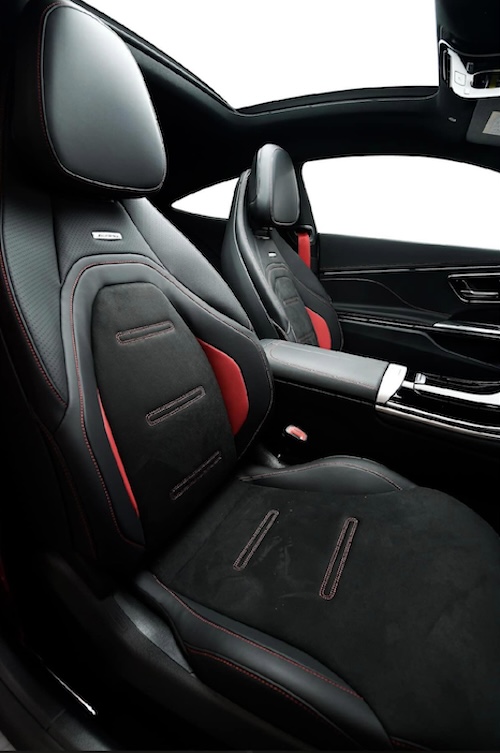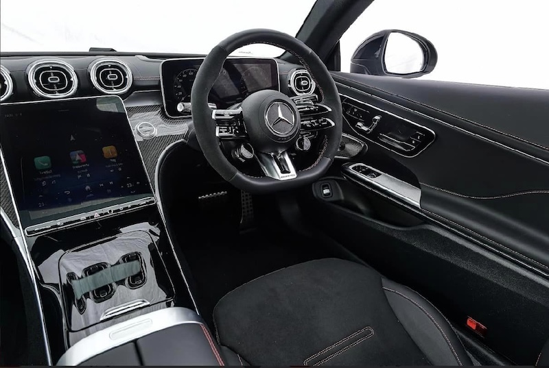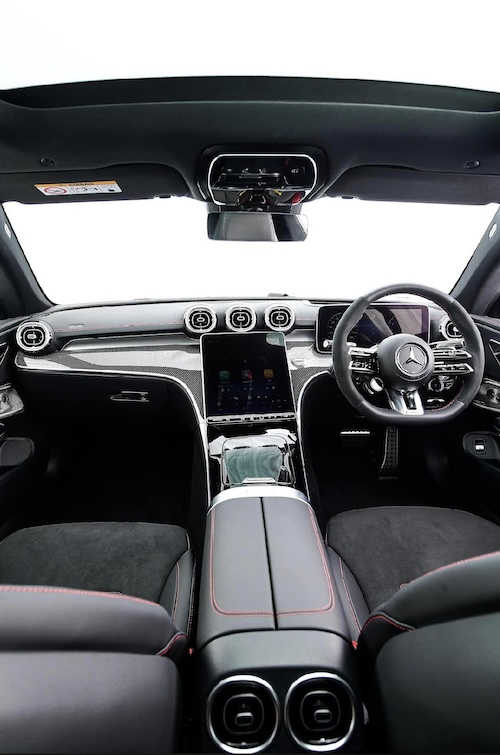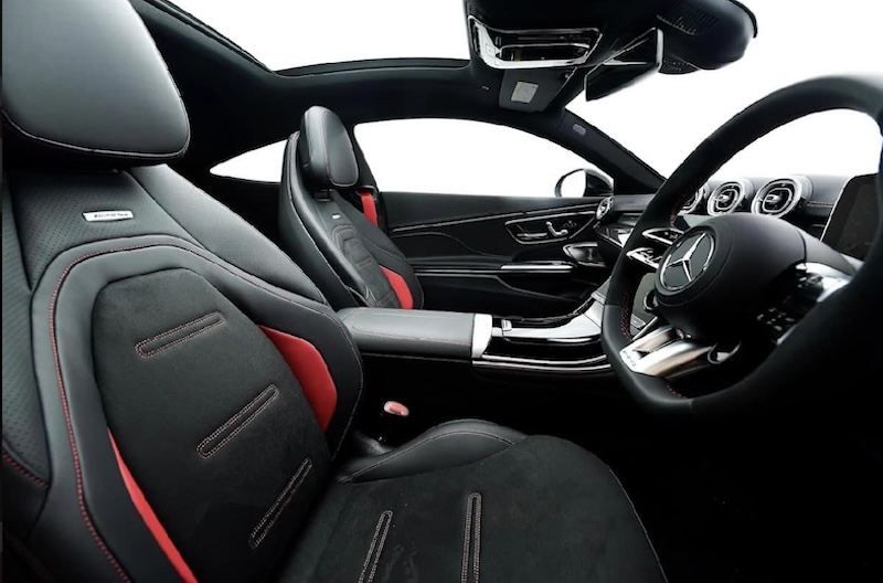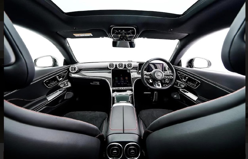 ภายในห้องโดยสารมอบรายละเอียดการตกแต่งที่โดดเด่นตามสไตล์สปอร์ตในทุกองค์ประกอบ ไม่ว่าจะเป็น พวงมาลัย AMG Performance steering wheel พร้อมระบบพวงมาลัย AMG Steering 3 สเตจ ติดตั้งเบาะนั่งหุ้มด้วยหนังและไมโครไฟเบอร์ ให้ความรู้สึกนุ่มสบายขณะโดยสาร มอบการขับขี่ที่เหนือกว่าด้วยระบบปฏิบัติการ MBUX Gen20x ที่ออกแบบมาตามรูปแบบโปรแกรม AMG