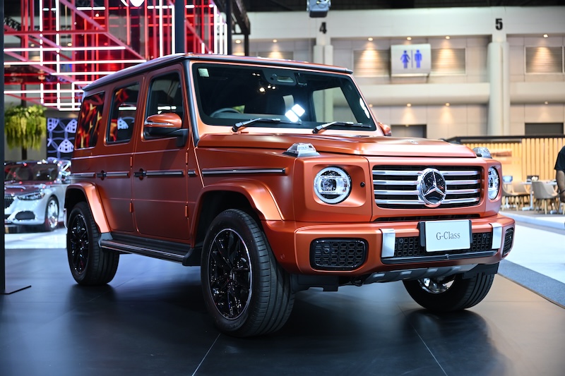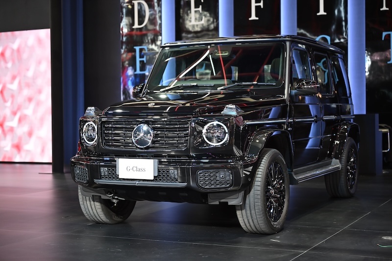 - G 580 with EQ Technology เจ้าของฉายา “King of Off-Road” มาพร้อมระบบขับเคลื่อน พลังงานไฟฟ้า 100% และมอเตอร์ไฟฟ้า 4 ตัว สามารถทำแรงบิดได้สูงสุดถึง 1,164 นิวตัน เมตร โดยมาด้วยกัน 2 รุ่นย่อย ได้แก่ รุ่น STANDARD ราคาเริ่มต้น 9,500,000 บาท และรุ่น EDITION ONE (จำหน่ายจำนวนจำกัดเพียง 6 คัน) ราคาเริ่มต้น 12,200,000 บาท