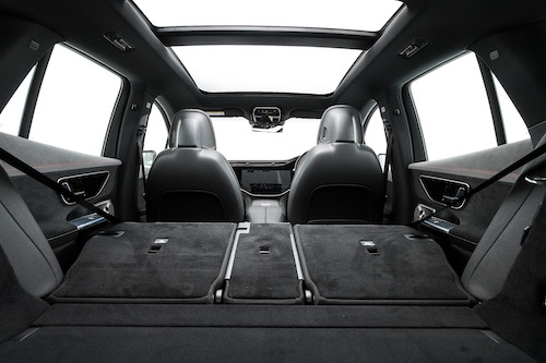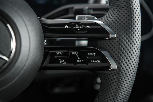 และสามารถปรับการส่องสว่างระหว่างขับขี่บนท้องถนนได้อย่างต่อเนื่องตามสภาพการจราจรและสภาพอากาศ ด้านหลังดีไซน์ไฟท้าย 3D helix design แบบคาดยาวตลอดช่วงท้ายรถ ติดตั้งล้ออัลลอยด์แบบ AMG Multi-spoke ขนาด 21 นิ้ว ผสานการทำงานด้วยระบบกันสะเทือนแบบถุงลม (AIRMATIC)