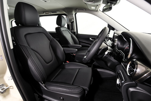 นอกจากความสะดวกสบายในด้านของฟังก์ชันการใช้งานและระบบความบันเทิงต่างๆ Mercedes-Benz V 250 d Exclusive ยังโดดเด่นด้านความสบายในห้องโดยสาร โดยที่นั่งผู้โดยสารตอนหน้าเป็นเบาะปรับไฟฟ้าพร้อมและสามารถตั้งค่าหน่วยความจำ (memory seat) ได้ด้านละ 3 ตำแหน่ง ในส่วนที่นั่งของผู้โดยสารตอนหลังแถวที่ 1 จะเป็นรูปแบบ Luxury captain seat แยกซ้าย-ขวา