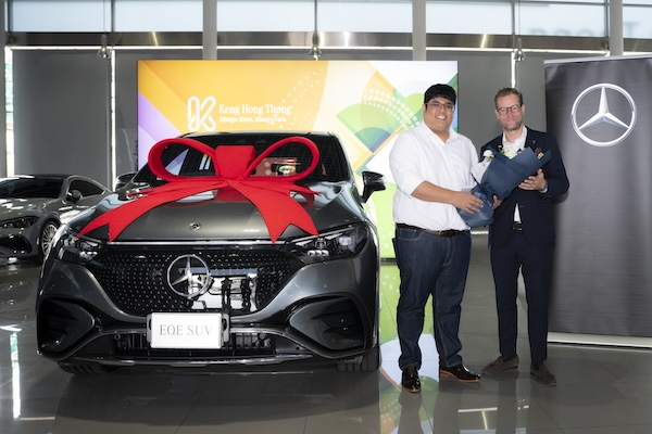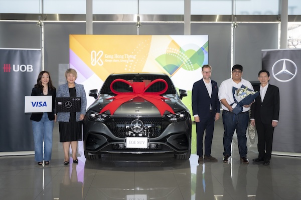 เมอร์เซเดส-เบนซ์ ประเทศไทย จัดแคมเปญพิเศษร่วมกับ ธนาคารยูโอบี ประเทศไทย ในโอกาสเฉลิมฉลองครบรอบ 5 ปี ของบัตรเครดิตยูโอบี วีซ่า เมอร์เซเดส (UOB Mercedes Credit Card) มอบรางวัลรถยนต์เมอร์เซเดส-เบนซ์ รุ่น EQE 350 4MATIC SUV AMG Dynamic มูลค่า 5,650,000 บาท แด่นายสหรัฐ เปาวรางกูล ผู้โชคดีจากแคมเปญนี้ (ที่ 4 จากซ้าย)