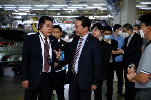 ในโอกาสนี้ มร. จาง ไห่โป และคณะผู้บริหาร ได้พาคณะทำงาน APEC 2022 TASK FORCE กระทรวงต่างประเทศเข้าเยี่ยมชมโรงงานประกอบรถยนต์ เอ็มจี บนพื้นที่กว่า 437.5 ไร่ มีกำลังการผลิต สูงสุด 100,000 คันต่อปี ด้วยนวัตกรรมระบบอัตโนมัติ(Automations) และหุ่นยนต์อัจฉริยะ(Intelligent Robotics) ผสานกับเทคโนโลยีการผลิตและระบบตรวจสอบคุณภาพที่ดีที่สุด