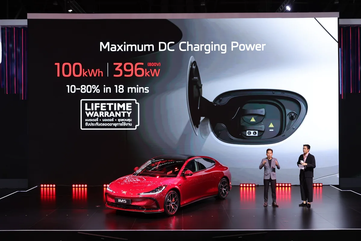 คนที่กำลังมองหารถยนต์ไฟฟ้าระดับพรีเมียมในไทยมีตัวเลือกใหม่ในช่วง Motor Show 2026 หลัง MG ประกาศเปิดตัว MG IM5 อย่างเป็นทางการในไทย พร้อมตั้งราคาพิเศษสำหรับรุ่น PREMIUM LONG RANGE ไว้ที่ 1,449,900 บาท จากราคาปกติ 1,549,900 บาท โดยชูจุดขายเป็นซีดานไฟฟ้าพรีเมียมสไตล์สปอร์ตคูเป้ที่วิ่งได้ไกลสูงสุด 860 กิโลเมตรต่อการชาร์จ 1 ครั้ง ตามมาตรฐาน NEDC มาพร้อมระบบไฟฟ้า 800 โวลต์ ชาร์จเร็ว 10-80% ในเวลาน้อยกว่า 18 นาที และการรับประกันแบตเตอรี่ มอเตอร์ และชุดควบคุมมอเตอร์ตลอดอายุการใช้งาน เปิดให้ลูกค้าชมรถจริงและรับข้อเสนอพิเศษได้ที่บูธ MG ในงาน Bangkok International Motor Show 2026 และโชว์รูม MG ทั่วประเทศ